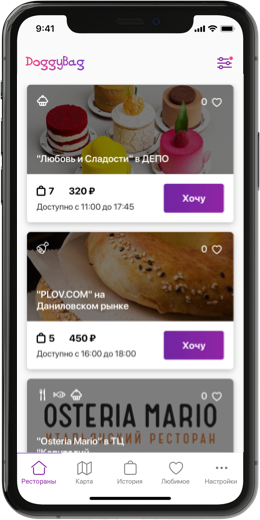 В таких случаях проданную позицию заменяют, и до прихода пользователя приложения такая замена может произойти несколько раз. Получается, что любой посетитель кафе, ресторанов и магазинов, представленных в DoggyBag, может купить их продукцию до прихода гостя, забронировавшего набор, но без большой скидки, предусмотренной концепцией.